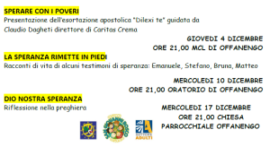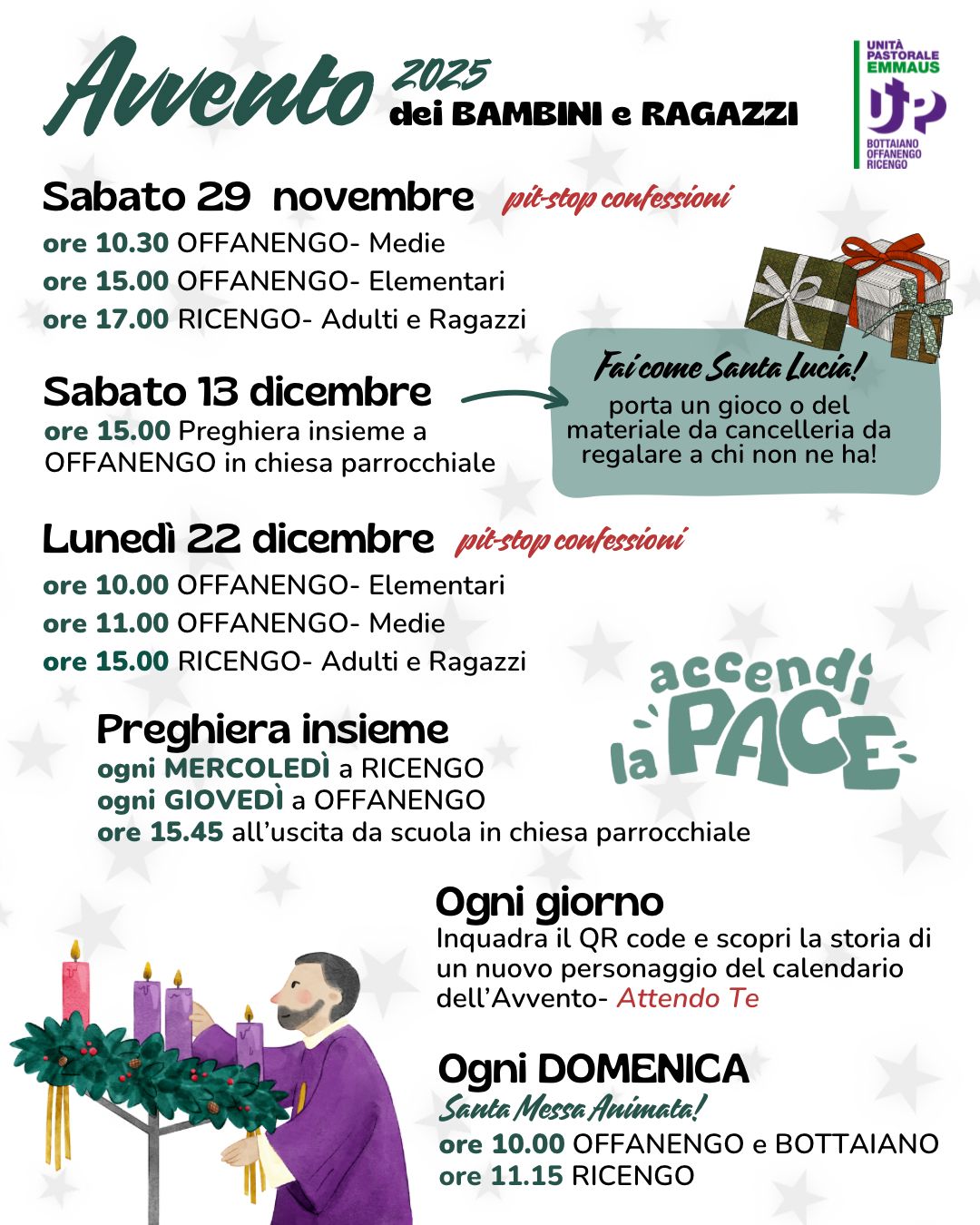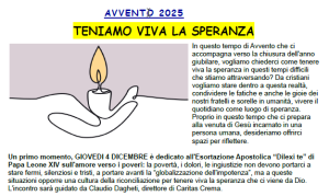 In avvento Messa quotidiana con un breve pensiero di riflessione. La messa è il luogo privilegiato per il nostro personale incontro con Gesù. Sabato alle ore 7.30 Messa con recita delle Lodi.